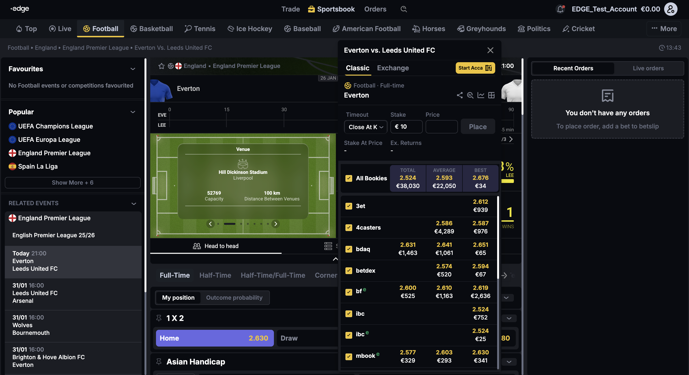 EDGE will then automatically distribute your bet across the connected bookmakers, securing the best available odds for your order.